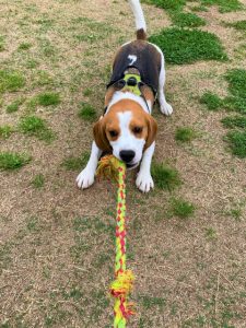 興奮するとロープを力いっぱいかみ首を振って引っ張ってきます。